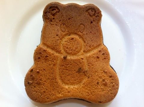 Ezúttal piskótát készítettem, szilikon formába öntöttem a tésztát. Így született meg ez a fincsi maci.